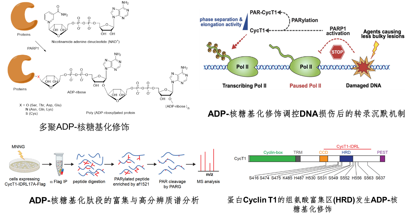 8.Huanyi Fu, Rongdiao Liu, Zixuan Jia, Ran Li, Feifeng Zhu, Wenxuan Zhu, Yangqing Shao, Yiyang Jin, Yuhua Xue, Jun Huang, Kunxin Luo, Xiang Gao*, Huasong Lu*, Qiang Zhou*. Poly (ADP-ribosylation) of P-TEFb by PARP1 disrupts phase separation to inhibit global transcription after DNA damage. Nat Cell Biol 2022, 24 (4), 513-525. DOI: 10.1038/s41556-022-00872-5