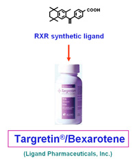 图为根据张晓坤教授的发明专利,由美国Ligand 制药公司开发的抗癌新药Targretin® /Bexarotene,已被FDA批准广泛应用于癌症病人的治疗。