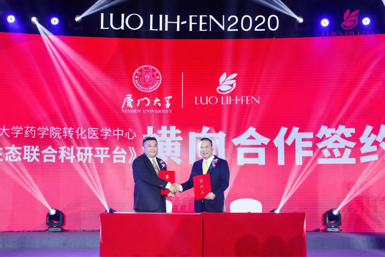 2020年10月,药学院转化医学中心执行主任曾子晏教授级高工与上市公司罗丽芬控股集团旗下嘉文丽(福建)化妆品有限公司执行长饶焕文医师达成合作,共同开展海洋活性及微生态成分开发以及干细胞技术开发项目研究。双方就此项目研究共同建立了运用在皮肤疾病修复与治疗的干细胞及微生态联合临床科研平台。