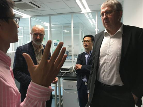 会后,李明玉副教授带领外宾参观了我院的实验仪器中心,向波恩大学与克里贝尔公司的领导、科研人员介绍我院的实验条件。未来我院将同国外高校进行更多的访问交流,并对相关的合作课题进行更进一步的深入沟通和推进,以期在不远的将来,通过双方的合作,产出优秀的科研及产业成果。