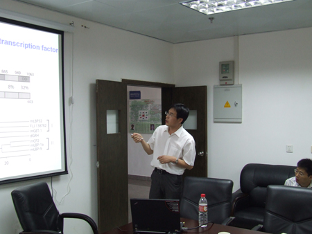 5月22日 下午来自美国加利福尼亚大学Irvine分校的于政权博士,在我院会议室为我校师生做了一场题为An evolutionarily conserved transcriptional mechanism for epithelial barrier formation的精彩学术报告。于博士通过课题组近几年大量的实验数据和图片向大家介绍了Get-1基因的特性。于博士介绍了从低等的果蝇到哺乳动物Get-1基因在结构和功能上都是高度保守的,并详细介绍了Get-1基因两大功能:皮肤组织的防御功能和再生功能。