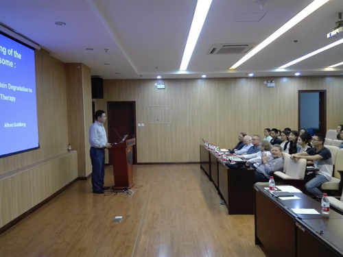 2016年4月23日,我院举行了主题为“蛋白质质量控制”的第三届国际研讨会。此次研讨会的主讲的嘉宾分别是来自哈佛大学医学院的Alfred Goldberg教授,法兰克福大学的Ivan Dikic教授,顺天乡大学的Jaeseok Han教授,德国国家分子医学中心的Thomas Sommer教授以及柏林夏里特医学院的Wolfgang Dubiel教授。