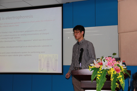 4月11-12日,应我院曾骥孟教授的邀请,台湾光鼎生物科技有限公司(BiOptic Inc)谢秉融工程师到我院进行毛细管电泳技术交流,以及介绍现代全自动化毛细管电泳仪(Qsep100)的应用及优越性,给我院汇报了一场精彩的学术报告-A best life science partner, Capillary Electrophoresis, for nucleic acid analysis。报告结束后,同学们纷纷就自己相关实验问题向谢工程师请教,整个报告会场气氛活跃。谢工程师这次到来,不仅让我们深入了解了电泳技术的发展、毛细管电泳技术的应用和优点,更重要的是,将毛细管电泳技术带进大家的实验设计,毛细管电泳技术是核酸分析中的一项重要技术。