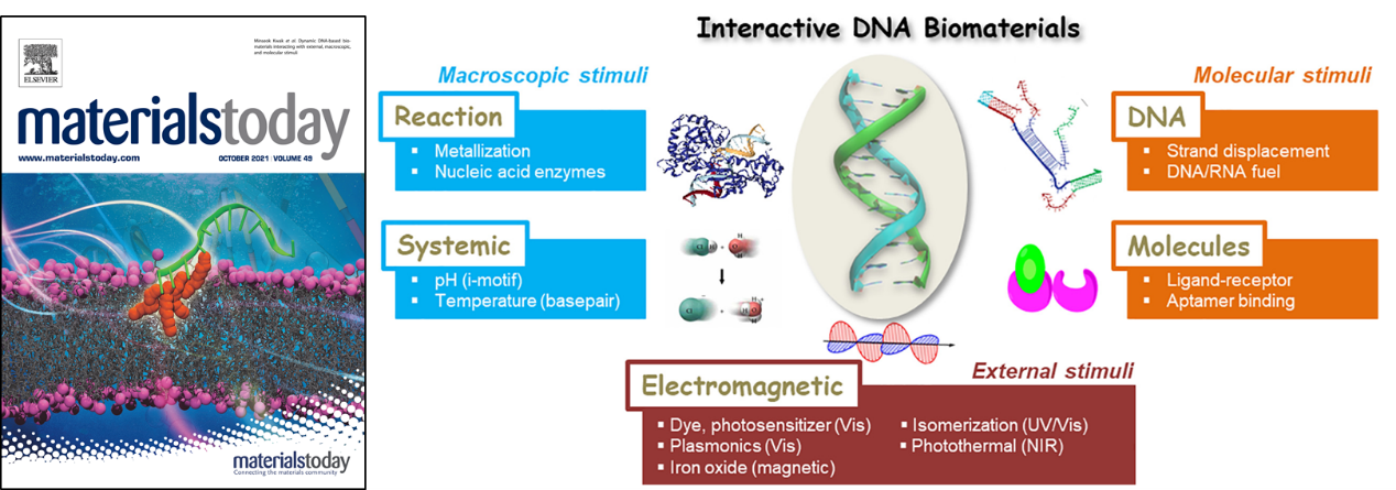 近日,厦门大学药学院霍帅东教授与德国莱布尼兹材料研究所Andreas Herrmann教授团队合作,在材料领域顶级期刊Materials Today发表了题为“Dynamic DNA-based Biomaterials Interacting with External, Macroscopic, and Molecular Stimuli”的综述长文,并被选为内封面(Inner cover)。