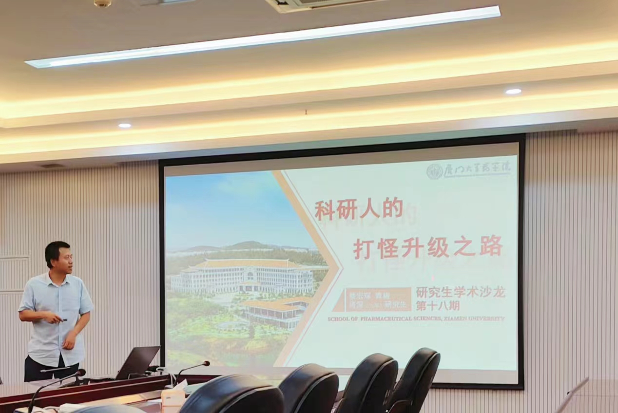 5月14日晚,第十八期药学院“闪药”——研究生学术沙龙在庄瑾楼520会议室举行。本次活动以《科研人的打怪升级之路》为主题,邀请到了药学院蔡宏琛教授作为主讲嘉宾。活动由2023级硕士研究生王晓冰主持。