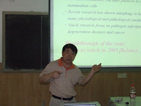 5月22日中国科学技术大学生命科学学院教授温龙平到我院访问,下午,为我院师生带来了一场题为Interfacing Biology and Material Science:Exploring Novel Functions and Applications for Rare Earth Nanomaterials的精彩讲座。温教授详细介绍了他近年来的研究成果:关于稀土纳米材料特殊的生物学功能和如何通过生物技术构筑特殊的纳米材料。讲座结束后温教授耐心的倾听了各院师生提出的问题,并做了详细的解答。