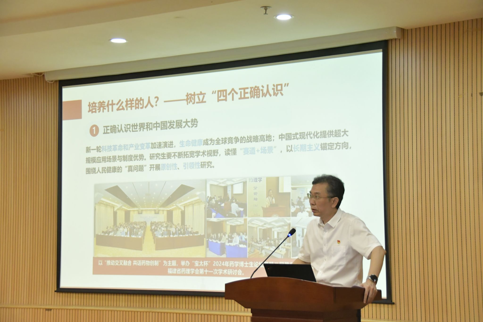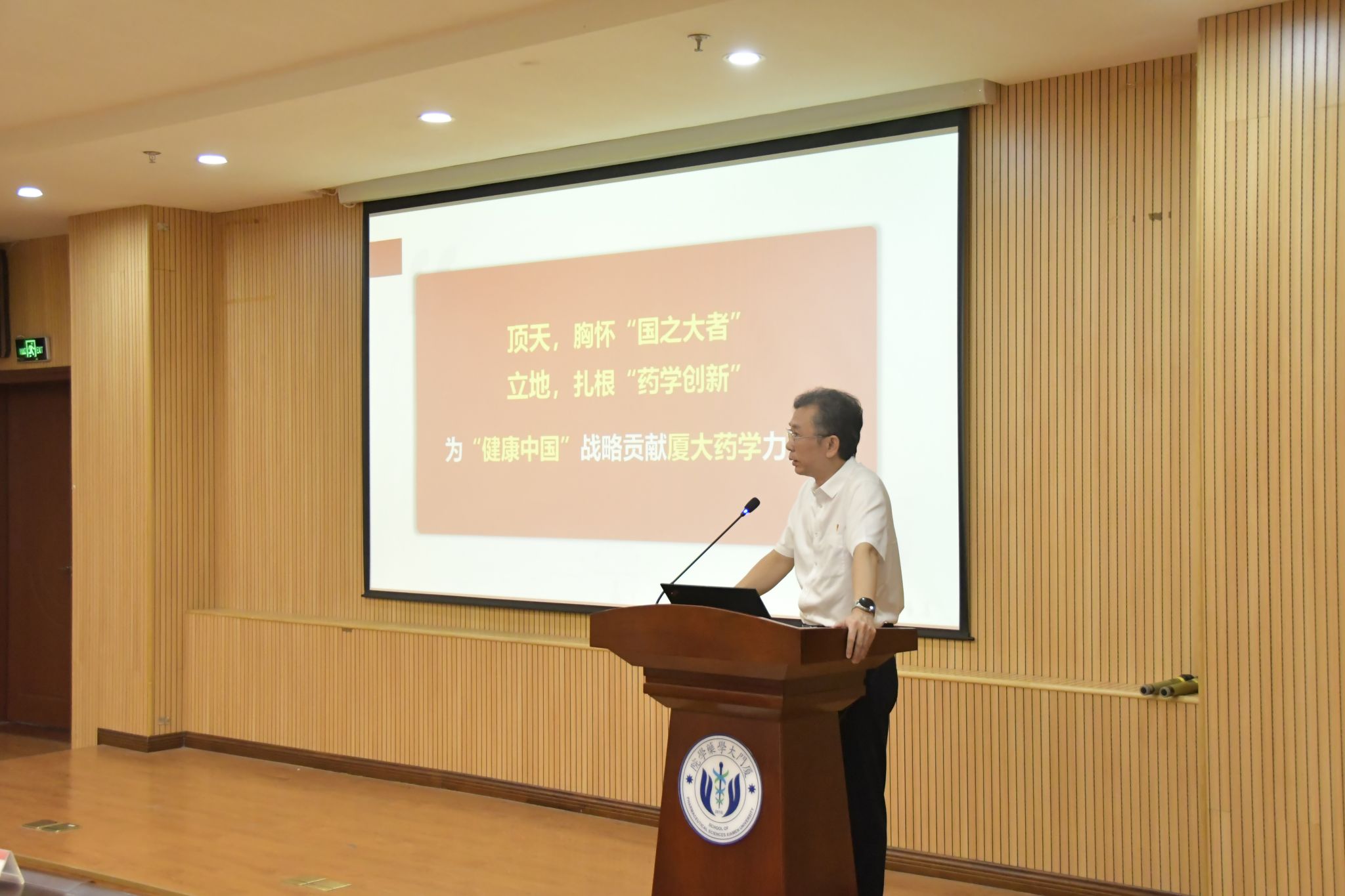 丹桂飘香迎新季,砥砺奋进启征程。近日,厦门大学药学院党委书记宋友良在庄瑾楼426报告厅为2025级研究生新生讲授了一堂内容丰富、意义深远的“开学第一课”。本次活动由药学院党委副书记杨明伟主持,团委书记方伊臻、党务秘书揭上锋参加活动。