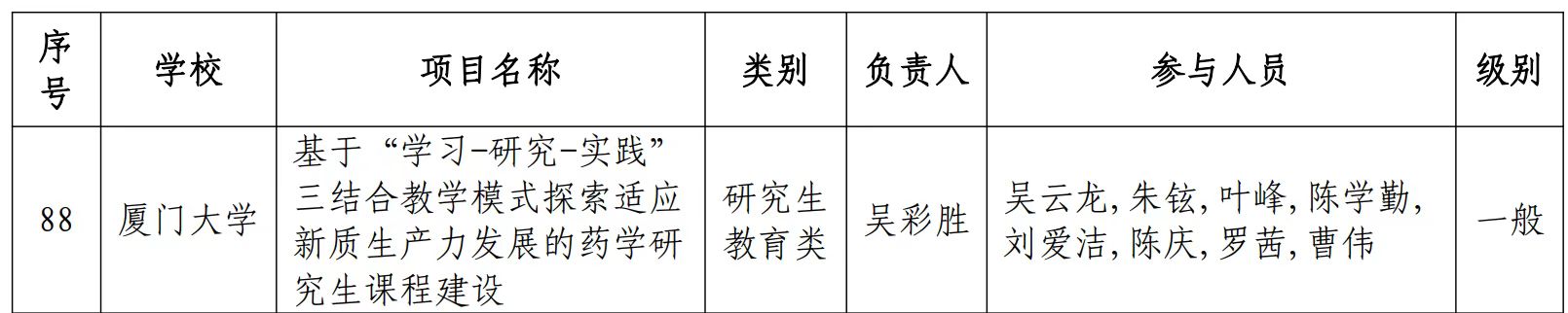 研究生教学成果展示--我院吴彩胜教授牵头项目入选2024年福建省本科高校教育教学研究项目(研究生教育类)