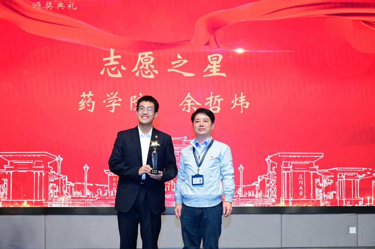 在“身边的好同学”厦门大学翔安校区第八届优秀大学生评选活动中,药学院2020硕士研究生余哲炜获评志愿之星,以上是评委会的颁奖词。