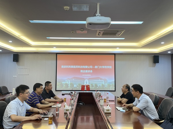 6月2日上午,南京科利泰医药科技有限公司董事长丁黎教授,南京派驻厦门大学科技人才专员沈国伟来访我院,座谈院企合作等事项。药学院副院长吴振、党委副书记杜超,吴彩胜副教授、林挺副教授参加座谈和交流。