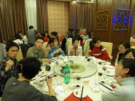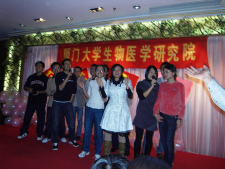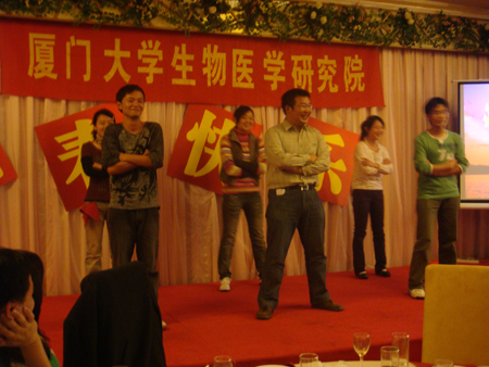 2008年12月31日晚,生物医学研究院全体师生在天鹅酒店中餐厅齐聚一堂,举杯畅饮、载歌载舞,以一场热烈欢快的跨年联欢晚会,迎接新一年的到来。