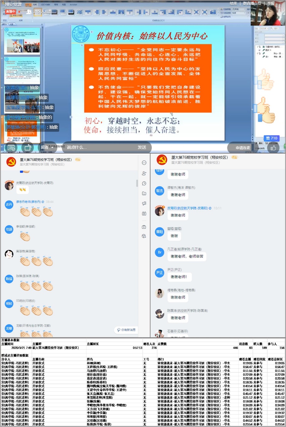 3月21日上午,我校党委党校第76期(学生)党的基本知识学习班翔安校区开班仪式在庄瑾楼520报告厅举行,来自环境与生态学院、生命科学学院、医学院、公共卫生学院、能源学院、海外教育学院/国际学院、航空航天学院、海洋与地球学院、药学院的153名入党积极分子和各学院带队老师通过视频参加了开班仪式,仪式由本期学习班承办单位药学院党委副书记杜超主持。