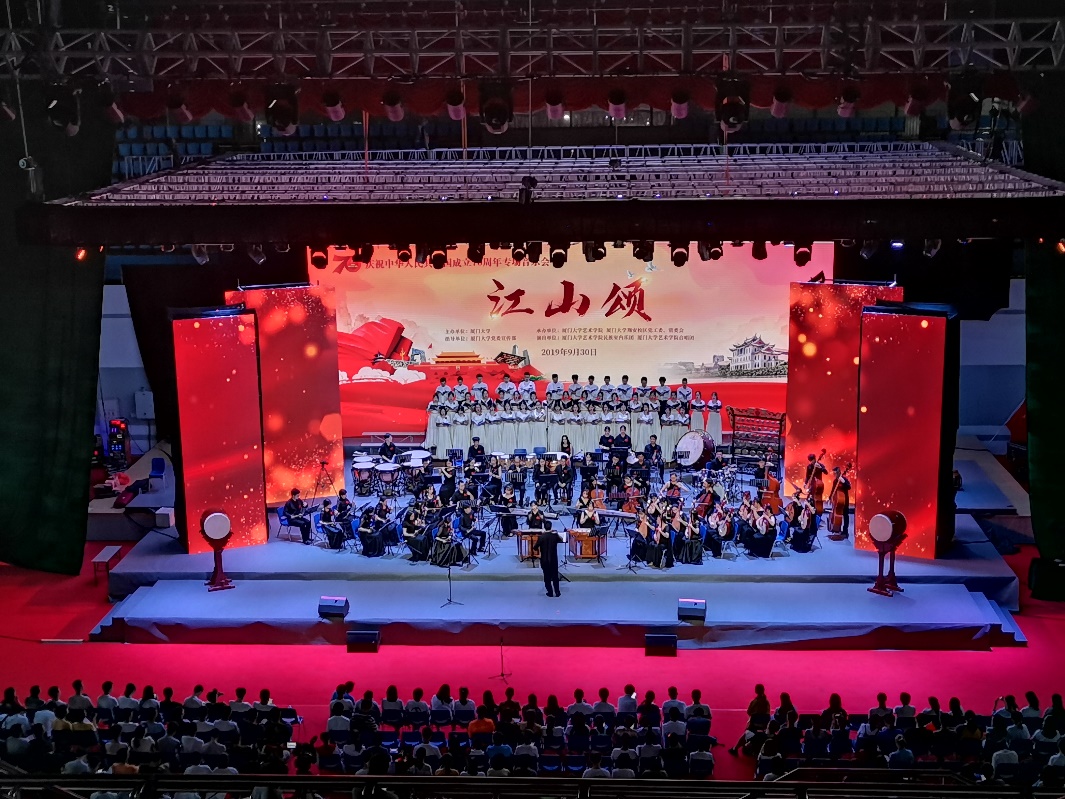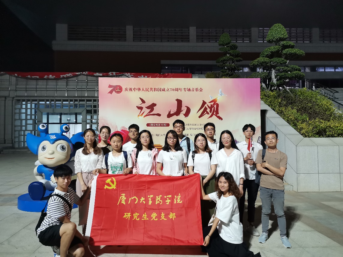 9月30日晚,为迎接中华人民共和国成立70周年,深入开展“不忘初心、牢记使命”主题教育,2019级研究生全体成员开展“我和我的祖国”主题党日活动,在厦门大学翔安校区综合体育馆集中观看庆祝中华人民共和国成立70周年专场音乐会——江山颂。