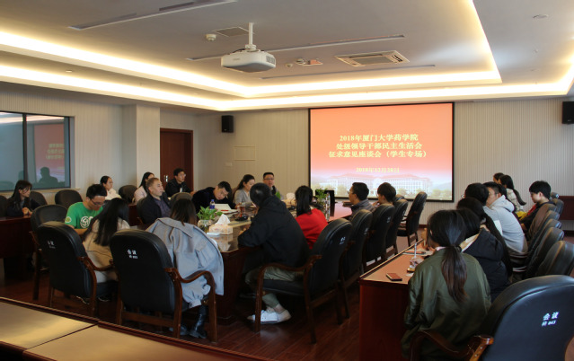 为开好2018年度厦门大学药学院处级党员领导干部民主生活会,2018年12月28日、29日,学院在庄瑾楼520会议室分别召开学生专场和教工专场征求意见座谈会,针对学院党员领导班子及其成员在思想政治、精神状态、工作作风和学院教学、科研、管理等方面情况,广泛征求师生员工代表的意见建议。学院党委书记陈怀锋,党委副书记陈夷、丁昌利,副院长吴振出席会议。学院专任教师、工程系列人员、行政人员、不同年级的学生代表参加会议。