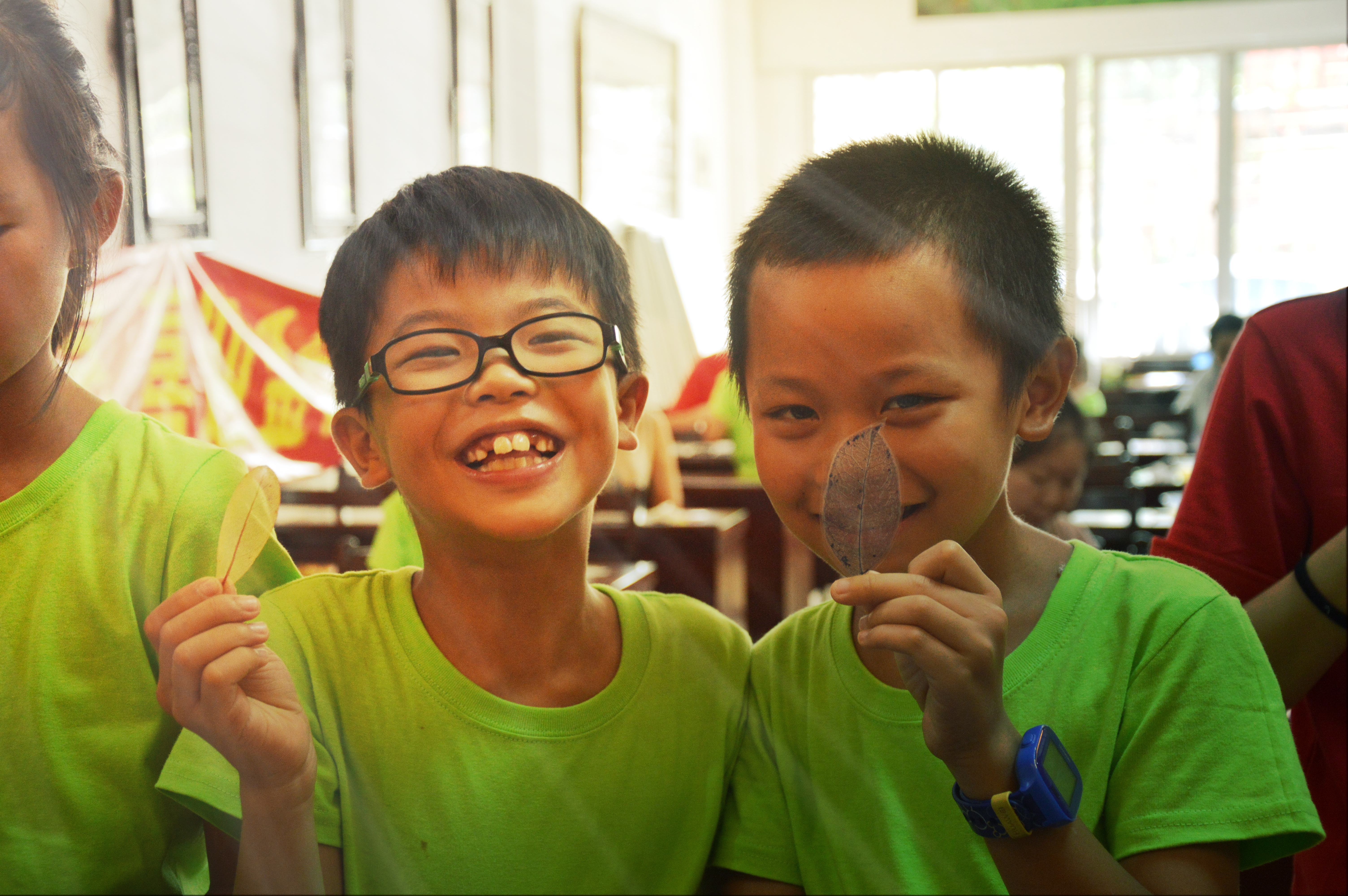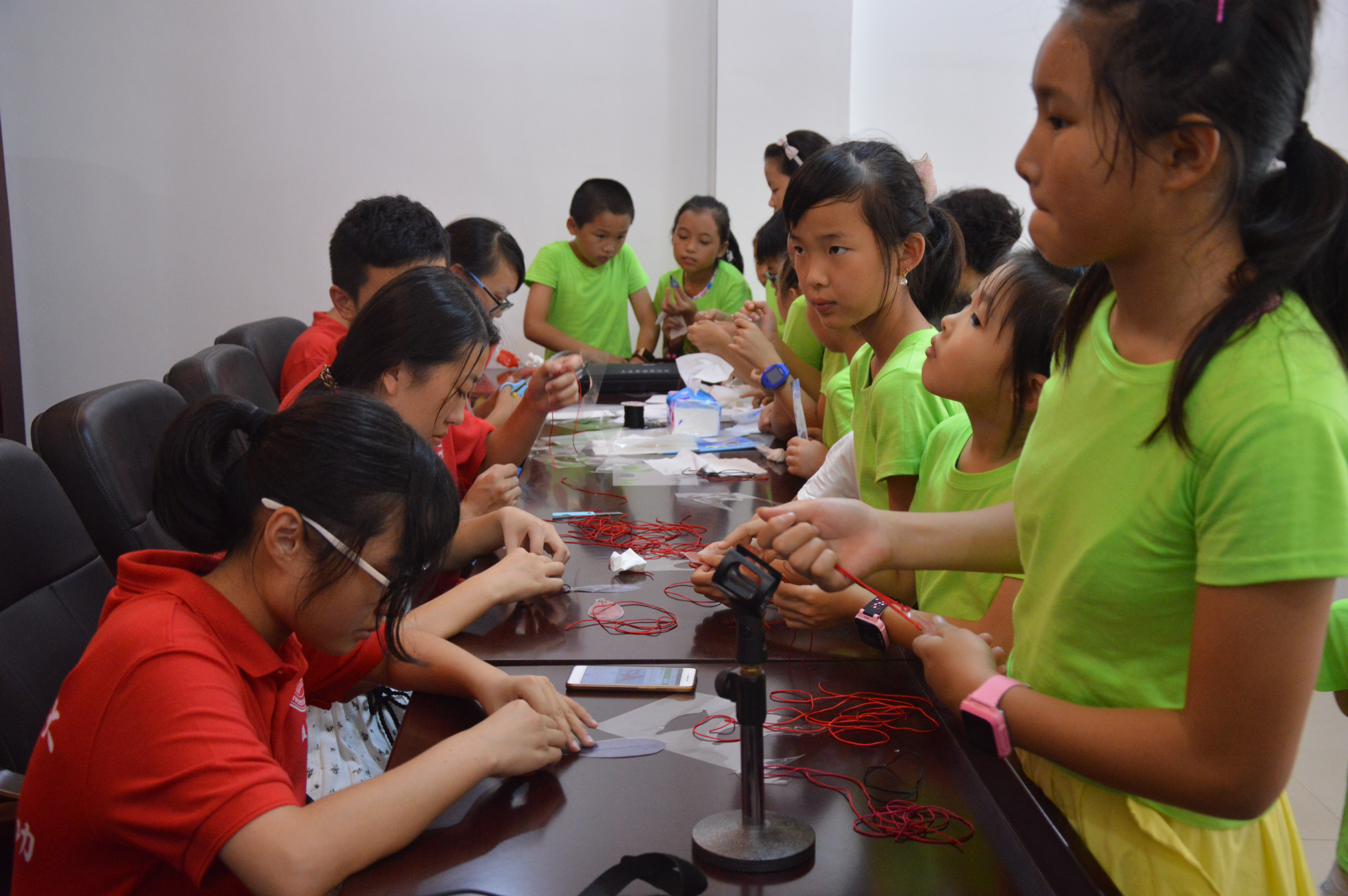 听了制作叶脉书签的方法,小朋友们跃跃欲试,实践队员们给大家分发了叶子和牙刷,并且手把手教给他们刷叶子的手法和注意事项,有了队员的指导,小朋友们也渐入佳境,很快就掌握了制作诀窍,短短20几分钟就刷出了漂亮精致的叶脉。在实践队员的引导下,每个小朋友都给自己的书签染上了漂亮的颜色,过塑,并且挂上了装饰的绳子,实践队员还给小朋友们的叶脉书签加上了精美的中国结。