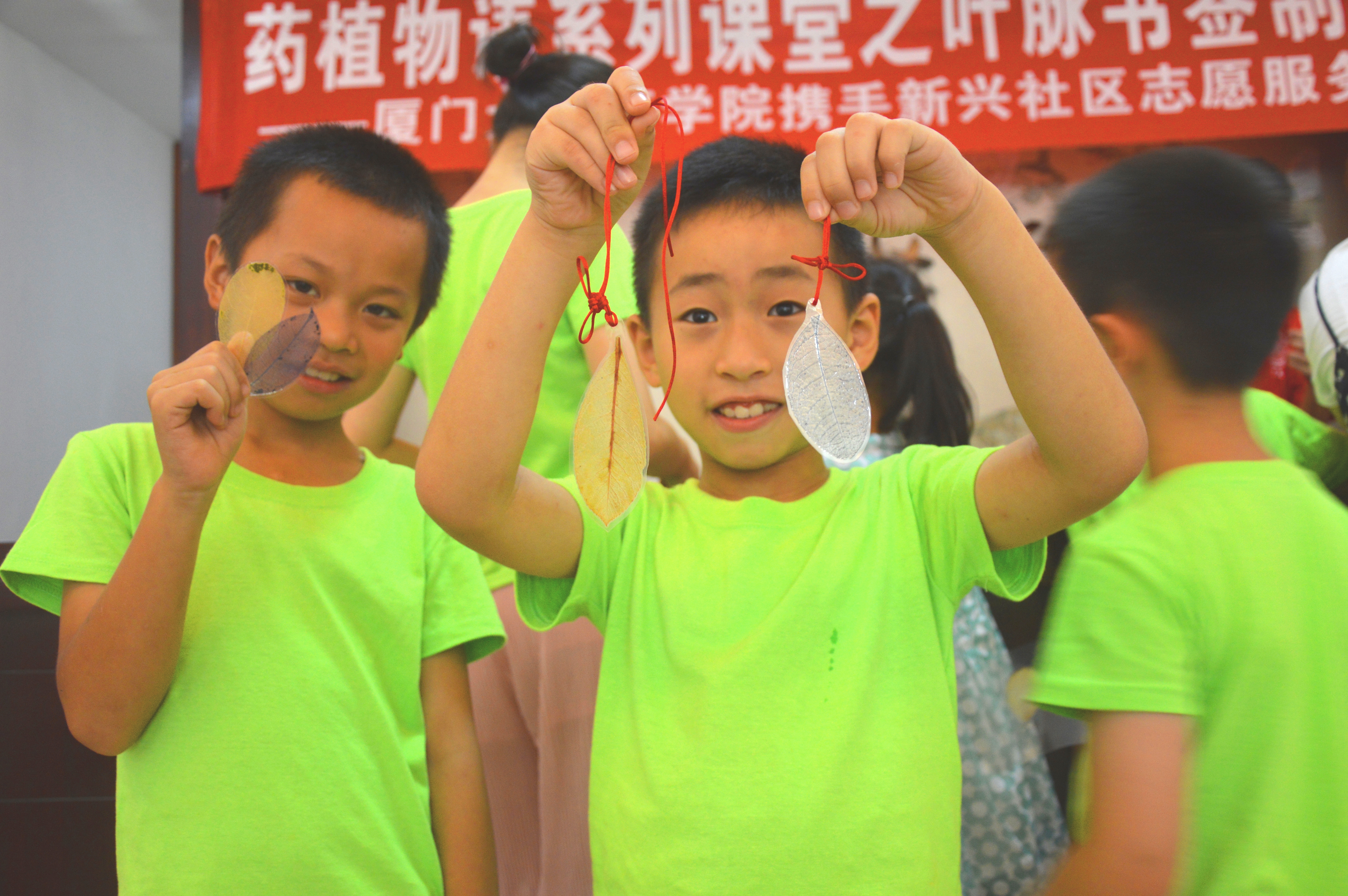 7月20日下午,由学院本科生党支部的党员和入党积极组成的校级重点暑期社会实践队——“药植物语”实践队,在翔安区新兴社区举办了药用植物知识科普及叶脉书签制作小课堂,成功吸引30余位小学生参与其中。