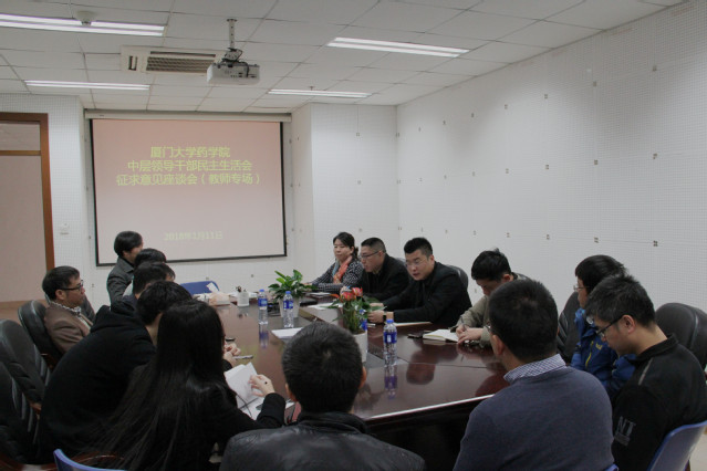 为开好药学院2017年度党员领导干部民主生活会,根据上级党组织有关要求和学院民主生活会安排,学院召开了两场座谈会,分别征求教师代表和学生代表对学院党员领导干部的意见建议。