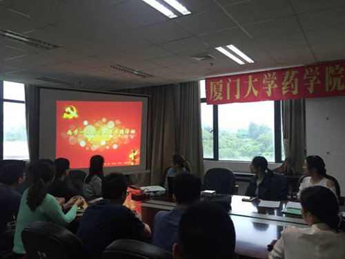 药学院2014级研究生第一党支部于2016年5月16日中午于药学院521会议室开展“两学一做”第一专题的学习教育活动。戴党员党徽