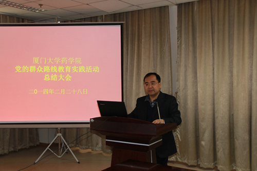 他指出,今后学院党委将本着阶段性与长期性、普遍性与特殊性、整改落实与建章立制相结合的原则,继续深化党的群众路线教育实践活动所取得的成果,推动专项整治、建章立制工作向纵深发展,以严肃的态度、严格的标准、严明的纪律狠抓落实,务求取得实效。学院领导班子和党员干部将牢牢把握学院发展方向,以教育实践活动为契机,继承优良传统,切实转变作风,破解发展难题,抓住发展机遇,带领师生员工共同为创建国际知名、国内一流药学院而不懈努力,为实现“厦大梦”、“中国梦”作出新的更大贡献。