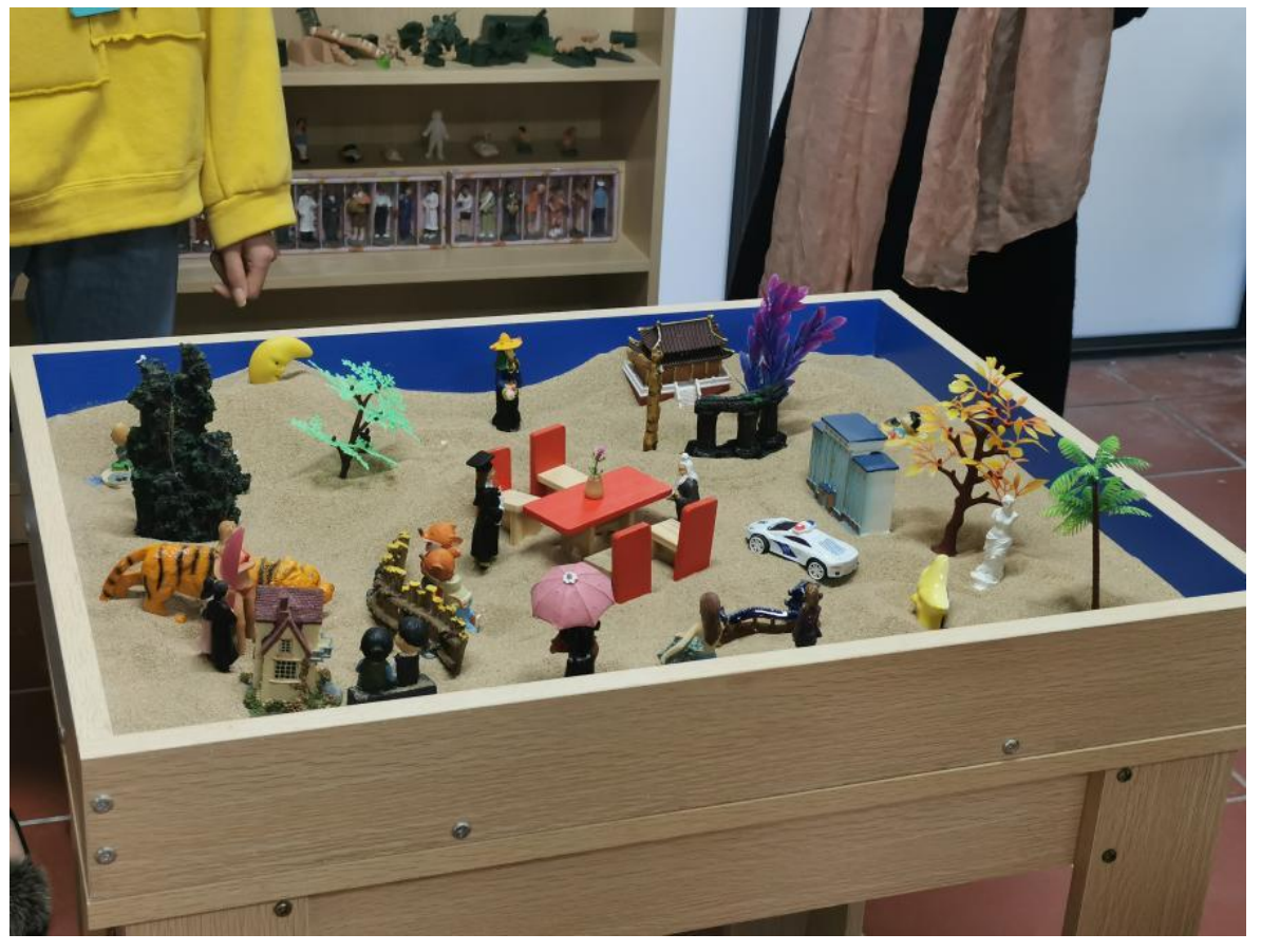 同学们依次将挑选出的模具放置在沙盘上,并利用沙子调整地形环境,创建出自己想象中的画面。几轮摆放后,小小的沙盘已经搭建起一个多彩缤纷的“沙世界”。同学们在自由创造的过程中,自身的内心世界也在游戏中得以体现。随后,同学们畅所欲言,分享了沙盘模具的选择和摆放理由,热烈的气氛将活动推向高潮,同学们在亲切的交流中打开了心扉。