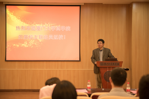 张晓坤院长详细介绍了药学院建设发展情况。他追溯药学院从2004年成立药学系、2006年成立生物医学研究院,到2010年正式挂牌成立药学院后至今的发展历程,讲起当年在文正楼、化学学院六楼实验室的辛勤创业的点滴,引起在座校友和师生们强烈共鸣。张院长结合学院“十三五”建设发展规划,从师资队伍、学生培养、基础设施建设、学院发展方向等方面为校友们详细介绍了学院目前的情况,希望药学院能在校友们的共同努力下,早日迈上国家一流、世界一流的行列。