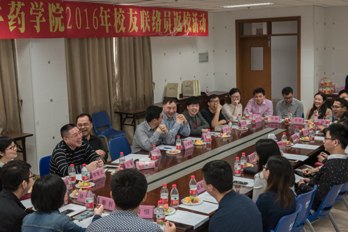 校友联络员座谈会随后在药学院521会议室举行。校友们分别介绍了本班同学毕业以后的就业情况,并对领导老师的栽培、关心表达了由衷的感谢。他们纷纷感言,只有在离开以后,才真切感觉到学院对同学们的好。校友们还结合自身工作情况,分享了收获和心得。大家认为,在药学院接受的教育,不管本科教育还是研究生教育,对自己目前的工作发展都有很大的帮助,学生时代打下的基础让他们在工作上更加优秀。2012级研究生王文竹举例说,在自己就职的公司,来自厦门大学药学院的员工俨然成为了标杆,因为他们不仅有扎实的知识基础,而且具有好学的品质,这些都归功于在药学院接受的良好教育。校友们还就如何有计划的建立学院校友会、如何组织大规模的校友返校活动等提出建设性意见。