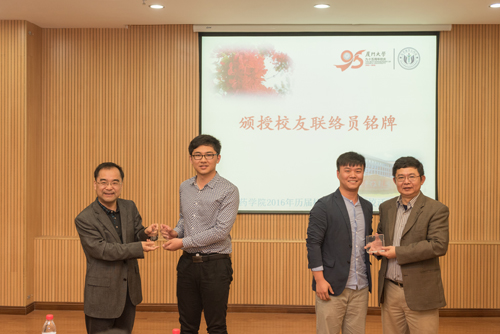 随后,张晓坤院长、黎永强书记共同为各位校友联络员颁授了联络员铭牌。