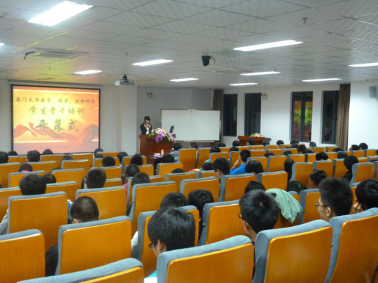 在全场人员的热烈掌声中,主持人宣布开幕式正式结束。在此,衷心地祝愿厦门大学药学院、医学院、生命科学学院联合学生骨干培训班取得圆满成功。