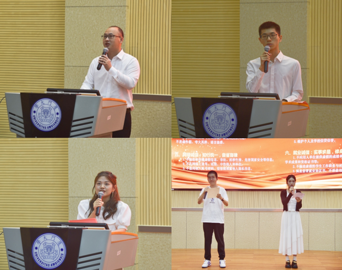 国家级青年人才项目入选者任长亮教授作为教师代表发言。他结合自身经历分享了学习工作感悟,勉励同学们要保持对知识的渴望与探索精神;鼓励大家发展自主学习与终身学习的习惯;希望大家坚定的追求自己的梦想与目标。此外,他也建议新生们在关心学业的同时,要去结交志同道合的朋友,体验多彩多样的文化活动,锻炼自己的领导才能和团队协作能力,最终实现自己的人生理想,成为社会的栋梁之才。