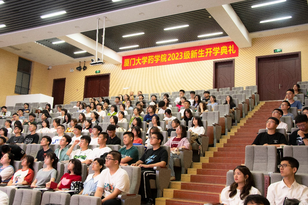9月6日上午,药学院在翔安校区学武楼B101报告厅隆重举行2023级新生开学典礼。学院党委书记宋友良,副院长(主持工作)刘文,院党委副书记杜超,副院长朱铉、陈海峰、吴云龙,教师代表,新生班主任,辅导员,2023级本硕博全体新生和新生家长代表参加活动。典礼由院团委书记陈洪主持。