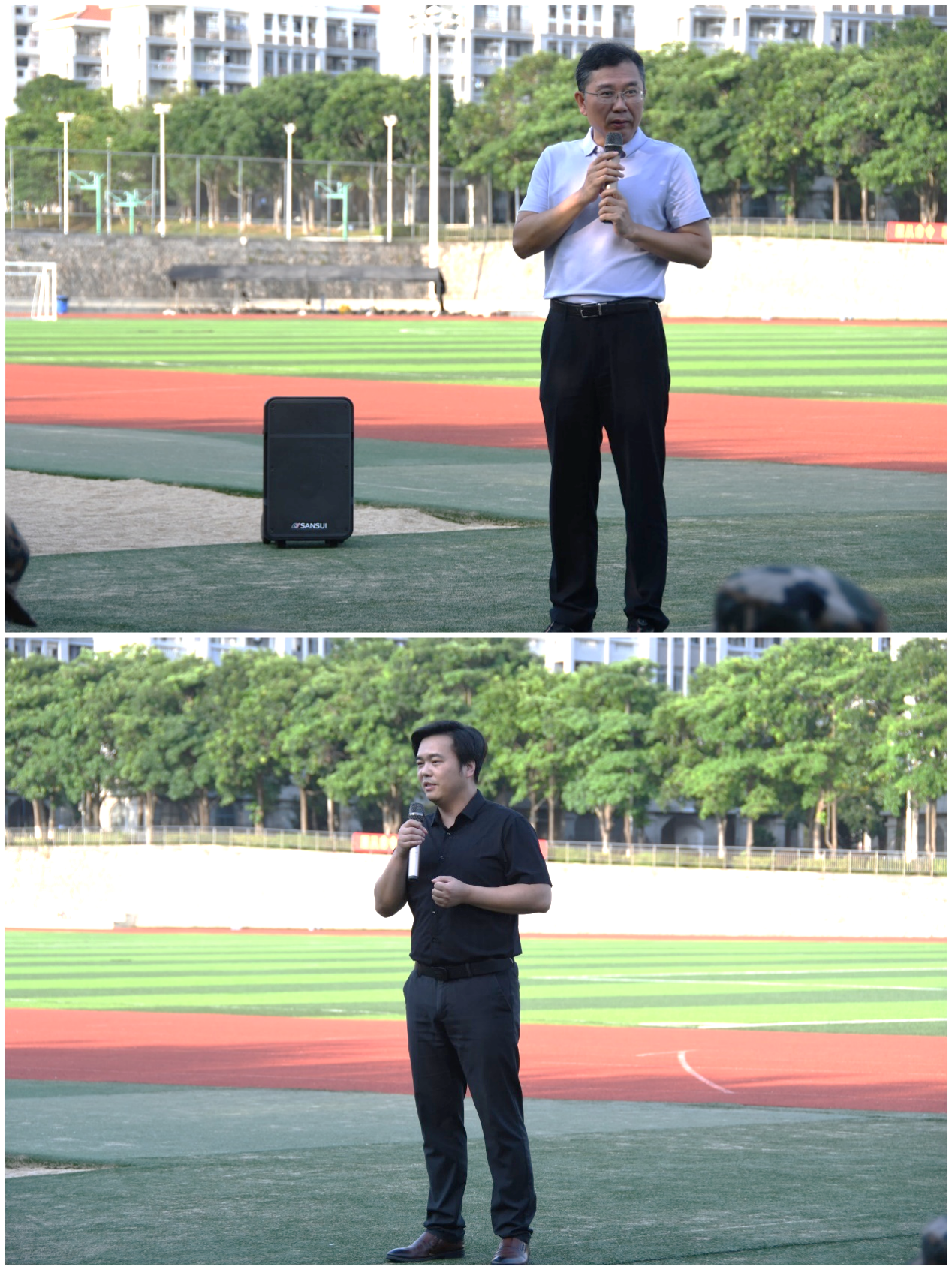 院党委书记宋友良关切地询问同学们的生活状况和训练情况,勉励新生们以积极的心态、昂扬的姿态、饱满的热情迎接军训这堂“大学第一课”,用严明的纪律、坚强的意志、不懈的拼搏扣好大学生活的“第一粒扣子”,同时也对承训官兵们的付出表示感谢。刘文则以自身参加军训的经历勉励同学们在军训中强化国防意识,坚定爱党爱国的决心和信心,培养吃苦耐劳品质和不轻言放弃的坚韧品格。