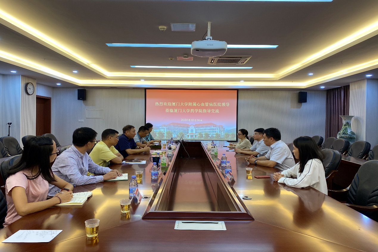10月14日上午,厦门大学附属心血管病医院科教部副主任陈水龙、药学部主任刘弋戈一行来访。药学院副院长吴振、党委副书记杜超和多名教师参加了交流会。