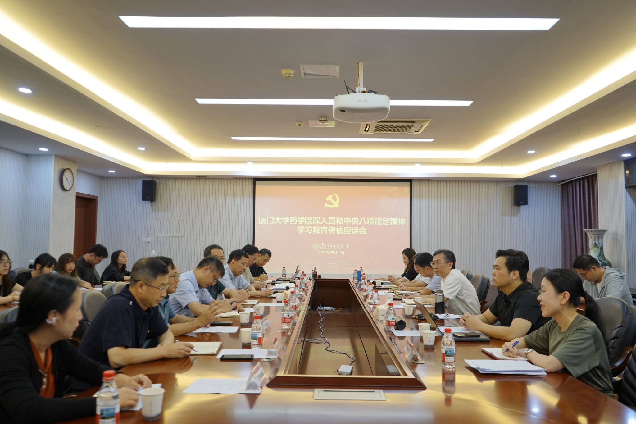 总结会之前,院党委于9月17日召开了深入贯彻中央八项规定精神学习教育评估座谈会。座谈会上,药学院党委副书记黄旻敏通报学院学习教育各项重点任务落实情况,特别是问题整改整治情况,梳理做法成效、分析差距不足。与会师生代表结合工作实际,对药学院学习教育的成果成效和薄弱环节进行评估,就巩固拓展学习教育成果、持续改进作风交流体会感受、提出意见建议。校党委党建联络员邵鹏飞,校纪委委员、环境与生态学院党委书记王晟同药学院师生代表一起围绕学习教育成果、巩固拓展学习成效及持续改进作风等议题展开了深入讨论。