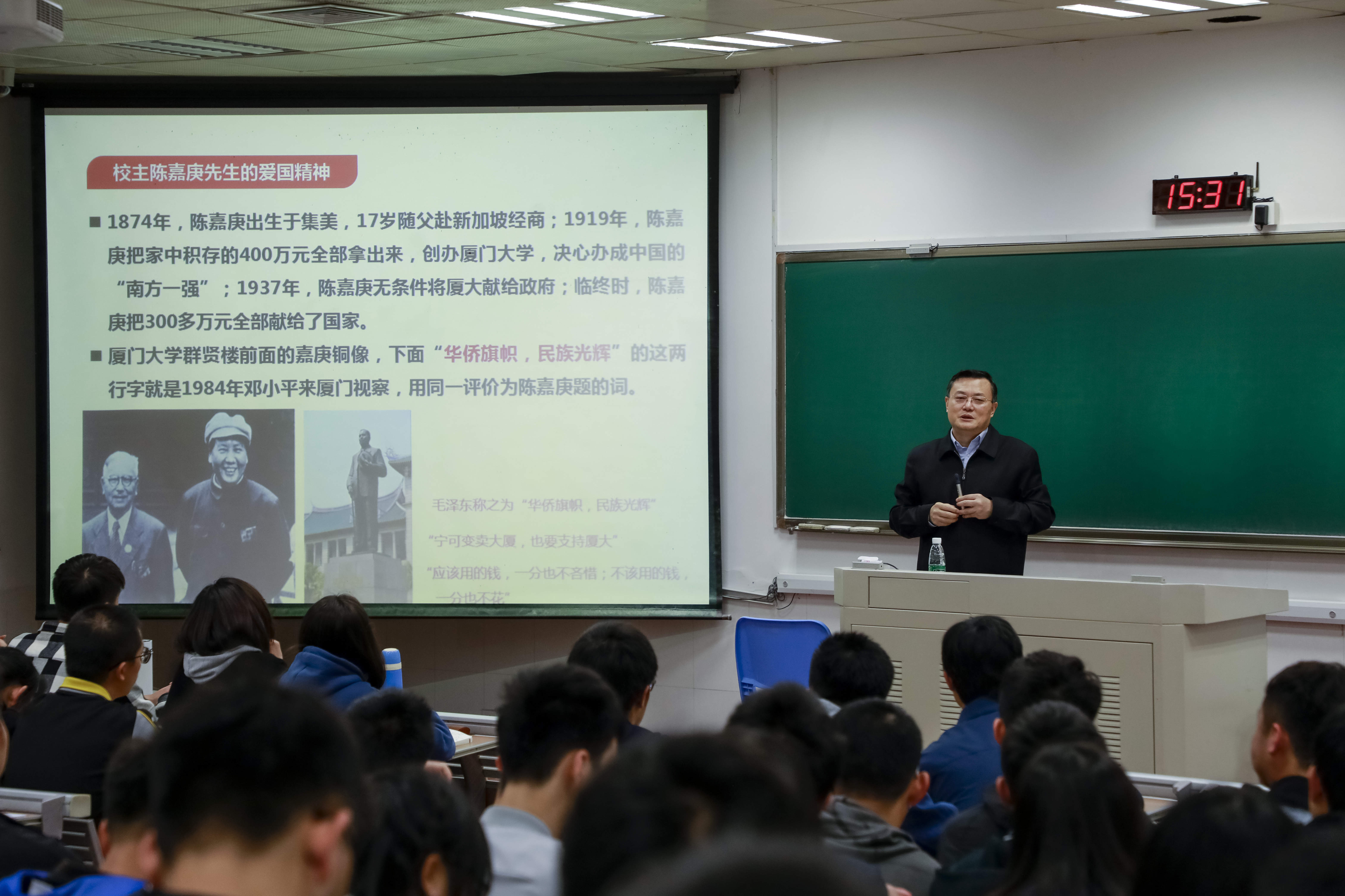 在题为《厦门大学四种精神的时代价值与现实意义》的思政课上,张荣从大学文化和大学精神谈起,生动讲述了厦门大学“四种精神”代表人物的先进事迹。