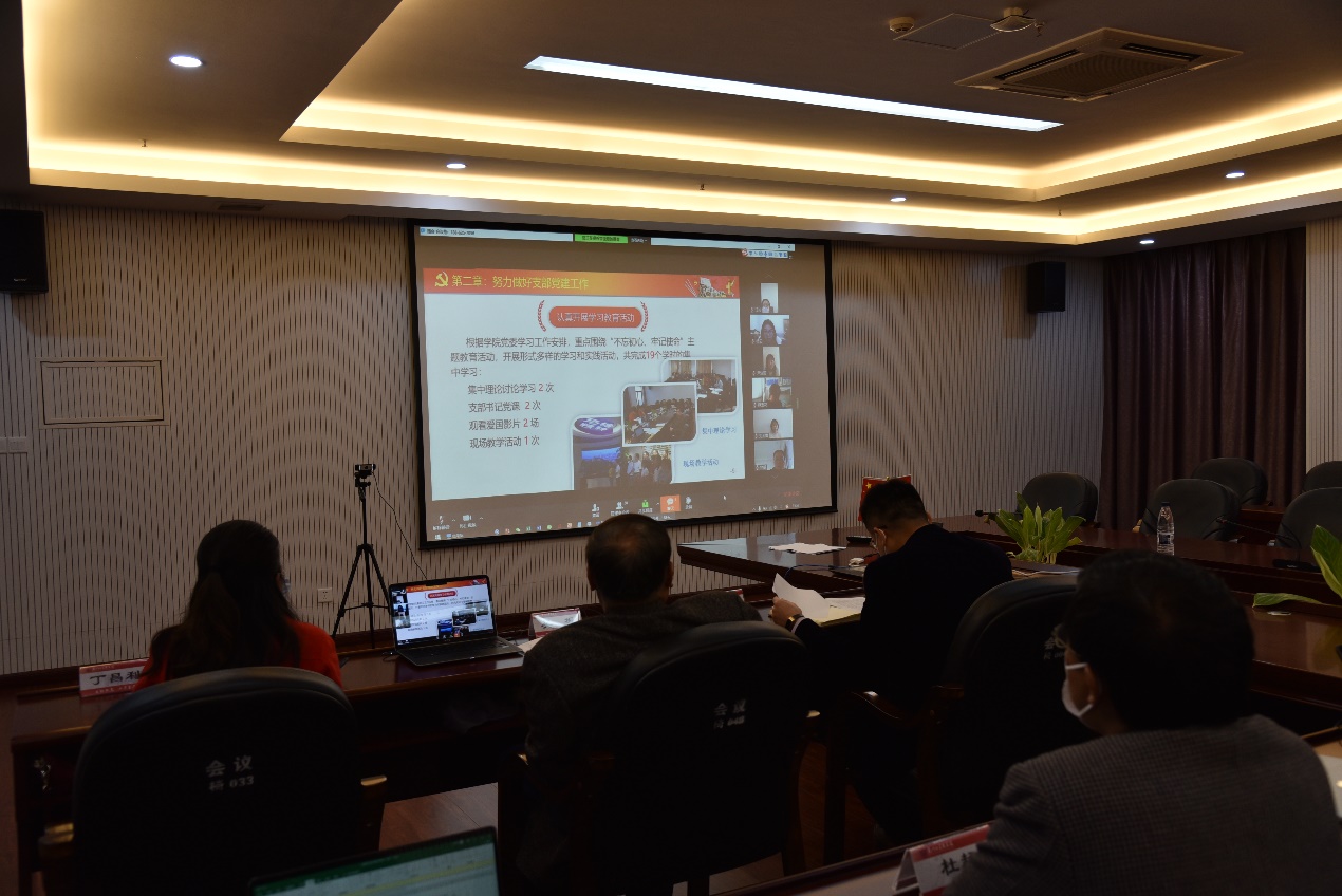 为深入学习贯彻党的十九大精神和习近平总书记关于落实党建工作责任制重要讲话精神,根据学校党委关于基层党建工作的部署,2月24日下午,药学院党委召开2019年度党支部书记述职大会。本次会议以庄瑾楼520会议室为主会场,采用网络视频会议形式召开。学校基层党建工作联络员邵鹏飞,学院党委书记陈怀锋,副书记丁昌利、杜超,党委委员、副院长吴振、曾锦章,党委委员、工会主席朱铉,党委委员陈海峰,全体党支部书记、支委,辅导员,党务秘书参加了会议。会议由学院党委副书记丁昌利主持。