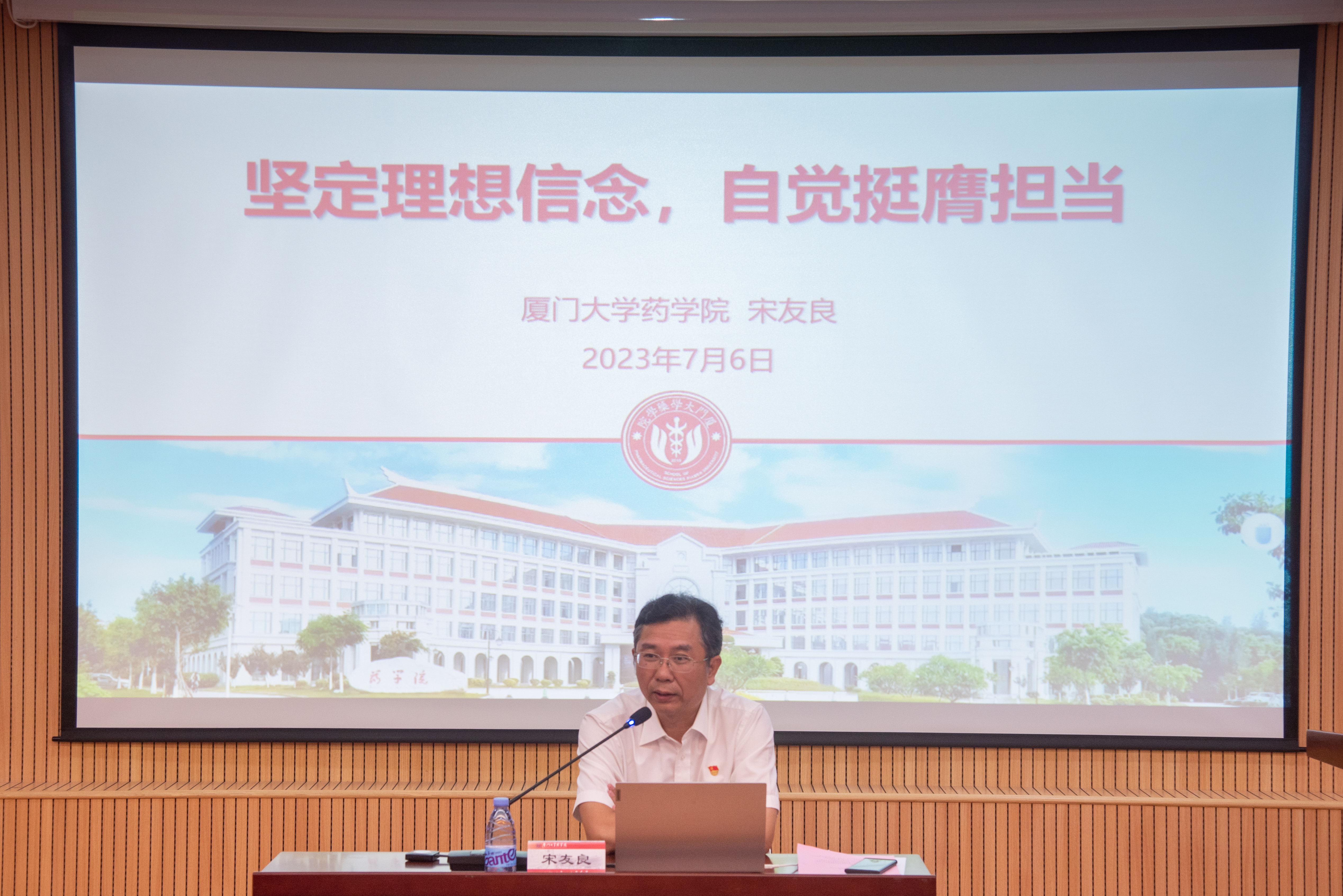 7月6日,学院党委书记宋友良以“坚定理想信念,自觉挺膺担当”为题,为“药学先锋成长计划”学生党团骨干培训班全体学员讲授专题党课,这也是第三期“先锋班”学员的“开班第一课”。