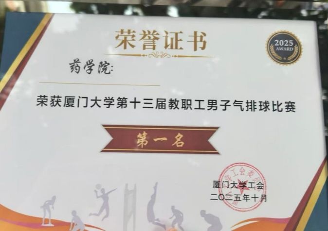 10月18日,由校工会主办、教职工气排球协会承办的厦门大学第十三届教职工男子气排球比赛在思明校区风雨球馆圆满落幕。本届比赛中,药学院教职工男子气排球队表现优异,以全胜的辉煌战绩勇夺桂冠,展现了学院团结拼搏、昂扬向上的精神风貌。