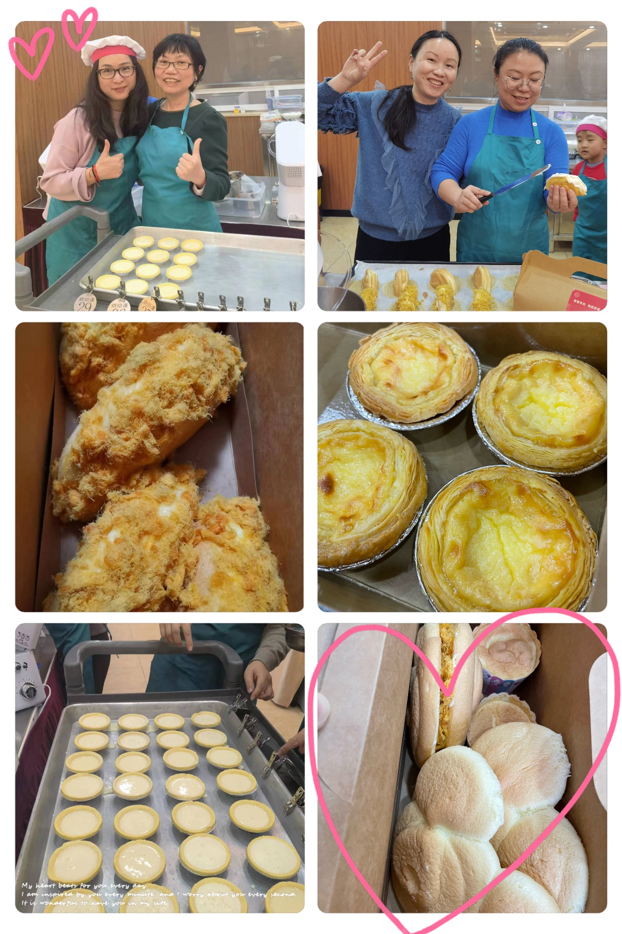 打发蛋清、搅拌面糊、混合成蛋糕液、用裱花袋挤出形状、烤箱烘焙……大家结合后勤老师的指导,充分发挥自己的想象力,全心投入、精心制作。等待烘烤完成的时间,大家满怀兴奋和期待,忍不住围着烤箱观摩。最终,一盘盘喷香的蛋糕胚冒着热气端出,再抹上沙拉酱、填入肉松夹心,就完成了美味的蒙古包;杯子蛋糕和蛋挞也都热乎乎、香喷喷地烤好了。现场洋溢着欢声笑语,空气中充满了糕点的香气。