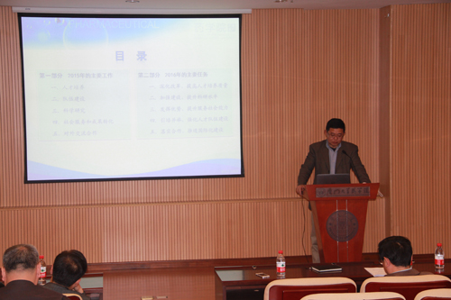 会上,药学院院长张晓坤首先作了题为《坚持正确办学方向,深化改革创新,发挥优势特色,推动学院各项工作向前发展》的工作报告。报告系统回顾了2015年在学院党委、行政班子的团结带领下,全院教职员工坚定方向、团结奋斗、深化改革,在学科建设、人才培养、科学研究、产学研合作、人才队伍建设、对外合作交流等各项工作中取得的优异成绩,指出了目前学院发展中存在的问题,并对2016年学院的重点工作做出了部署。