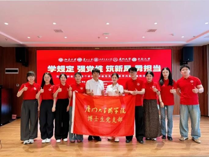 近日,厦门大学药学院院长刘文、党委副书记杨明伟、团委书记兼博士生党支部书记方伊臻及部分研究生党员赴湖南,与北京大学、复旦大学、西安交通大学、中南大学研究生样板党支部共同开展“全国百个研究生样板党支部”联学共建活动。此次活动以“学规定、强党性、筑新风、勇担当”为主题,吸引全国2000余名师生党员代表通过线上线下方式参与。