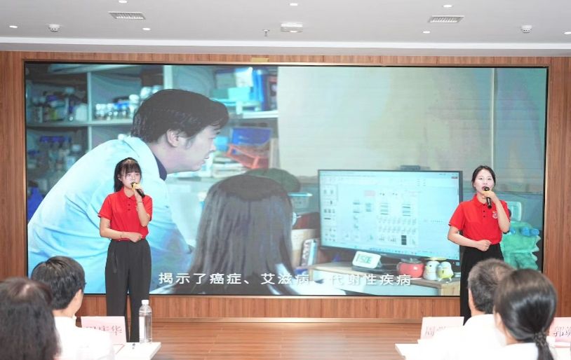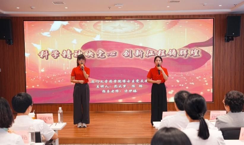 厦门大学药学院博士生党支部范大梦、陈璐以“科学精神映党心 创新征程铸辉煌”为题。不仅讲述顾方舟、吴孟超等科学巨匠的感人事迹,也聚焦身边榜样药学院院长刘文教授他深耕癌症研究二十余载,带领团队突破多项关键技术,推动创新药物研发。“科研攻关如同攀登险峰,每一步都要脚踏实地;党员身份如同旗帜,要始终走在最前面。”刘文教授的科研故事,引发现场强烈共鸣。