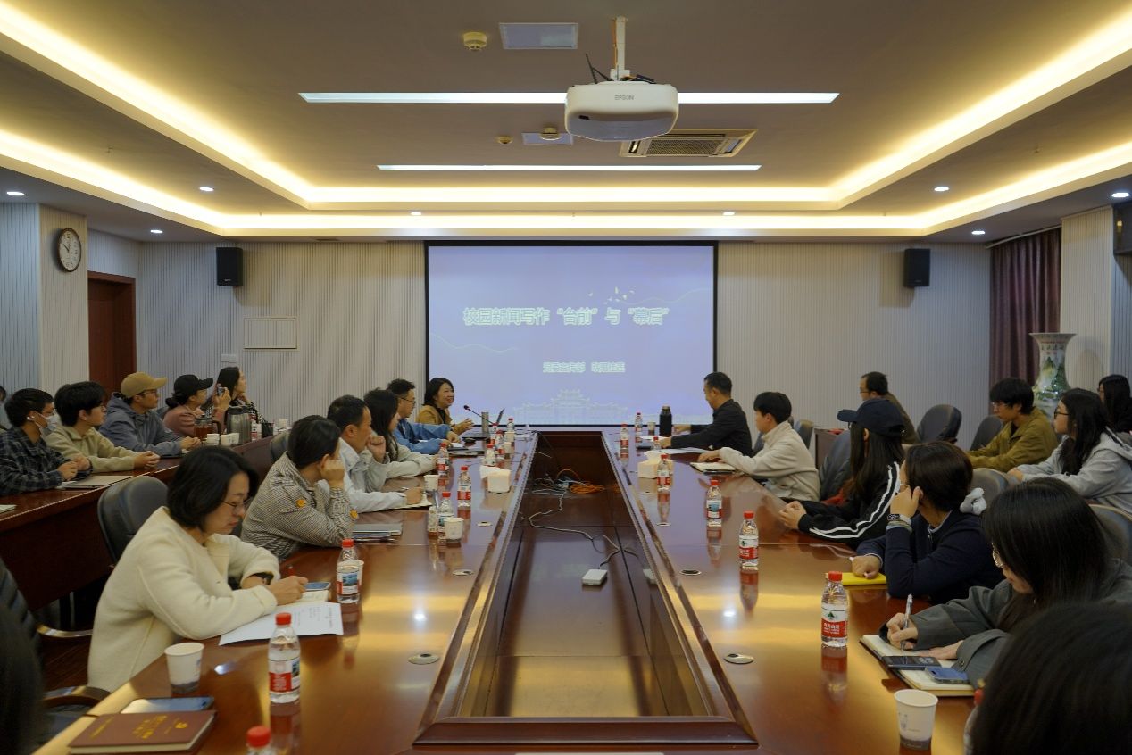 欧阳桂莲从宣传工作的重要性出发,援引党的新闻舆论工作方针,结合高校宣传“内聚人心、外树形象”的需要与我校实际,以自身新闻采写实践为脉络,通过一系列生动案例,带领大家展开新闻写作探索。