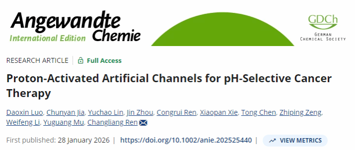 近日,厦门大学药学院任长亮教授团队成功开发了一类可响应酸性微环境、并在低 pH 条件下被激活的人工离子通道,实现了对多种肿瘤细胞的选择性杀伤。相关研究成果以“Proton-Activated Artificial Channels for pH-Selective Cancer Therapy”为题,在线发表在Angewandte Chemie International Edition杂志(DOI:10.1002/anie.202525440)。