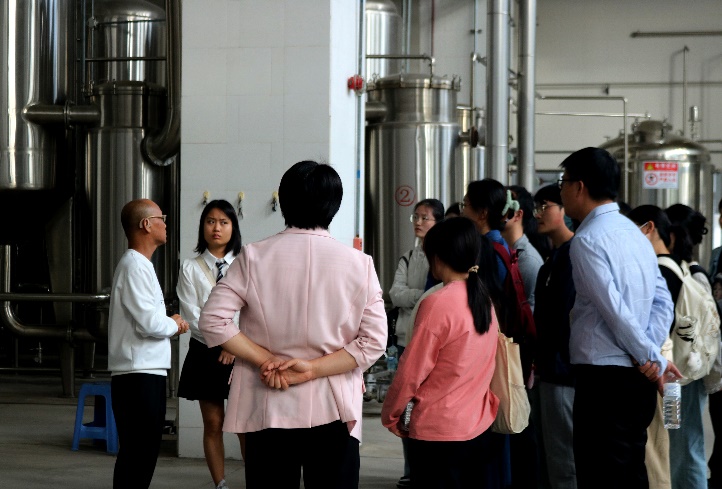 金日制药(中国)有限公司:同学们参观了中药生产车间,了解了中药现代化生产技术,金日制药副总裁周丽娟博士为大家讲解了生产中“人、机、料、法、环”五大要素的管理和规范。