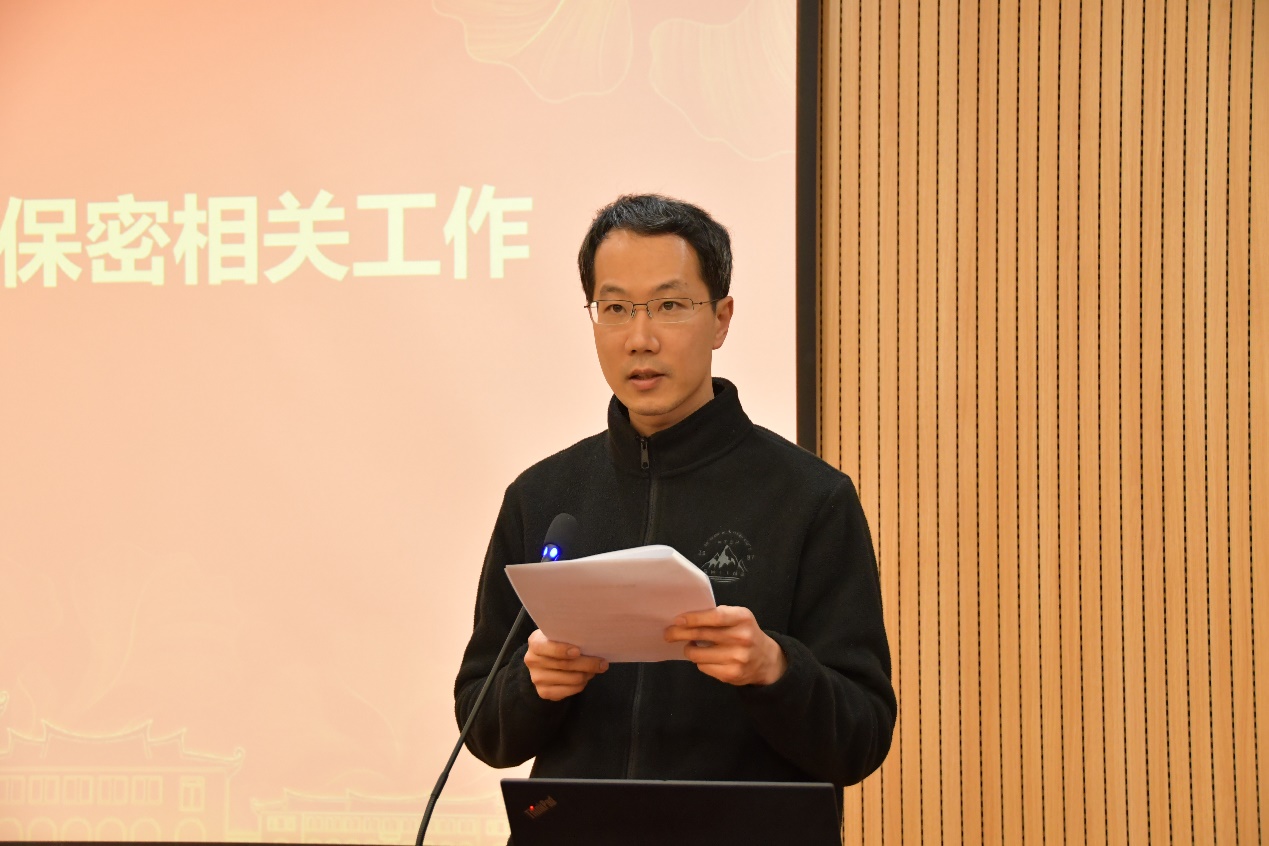 吴云龙传达保密工作要求。他强调,广大教职工在寒假期间要注意做好保密工作,严禁出现保密法第五十七条规定的13种严重违法行为,重视网络保密和信息安全,加强外出来访合作交流的管理。他还特别强调了做好实验室生物信息保密工作的重要性。