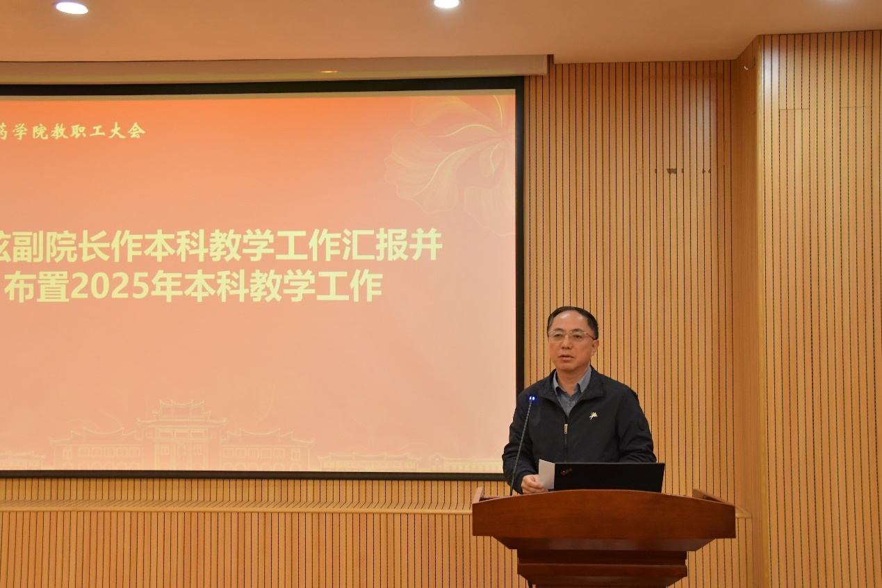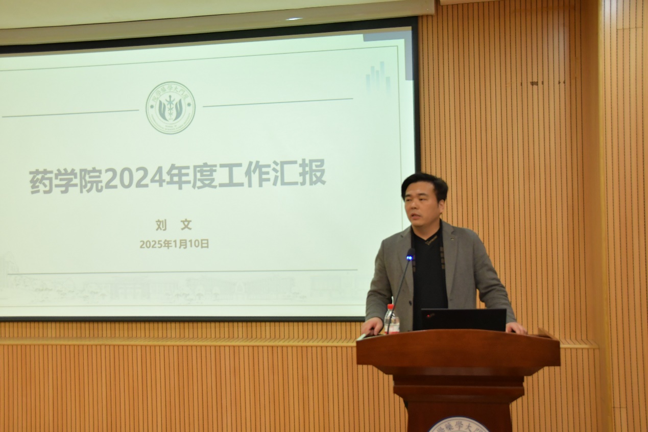 1月13日下午,药学院在426报告厅召开全院教职工大会,总结2024年度工作,部署下一阶段重点工作。院党委书记宋友良,院长刘文,副院长陈海峰、朱铉、吴云龙及学院全体教职工出席会议。学院办公室主任吕磊主持会议。