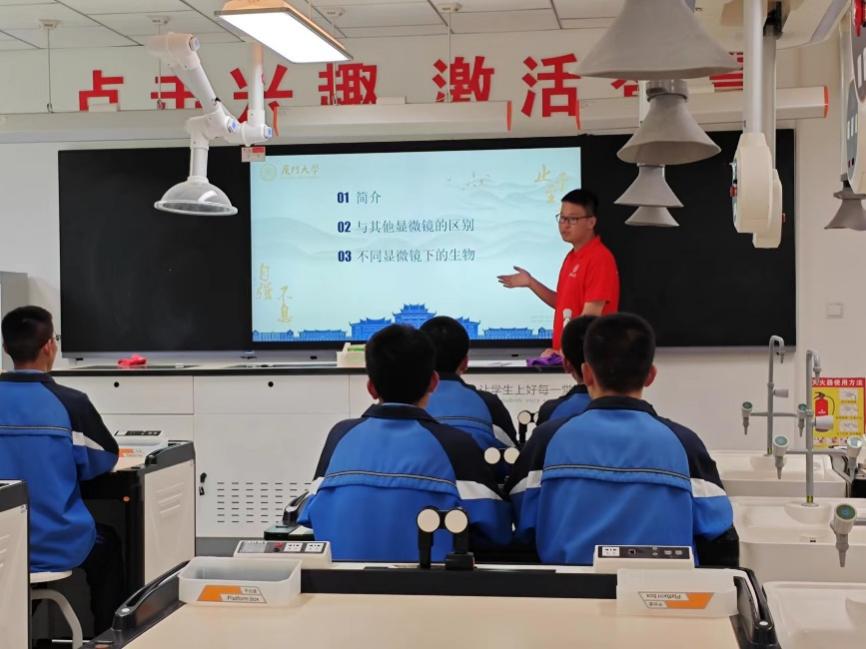 2023年7月,厦门大学向隆德县高级中学捐赠了一台价值405万元的超高分辨率显微镜。为更好实现该仪器的教育帮扶价值,今年5月起,在学院吴彩胜教授的带领下,服务团发挥专业所长,多次同隆德县高级中学领导老师进行对接,在调试与维护仪器的同时,立足当地高中学生特点,设计教案与课件,打造出一款别开生面的科普课堂。