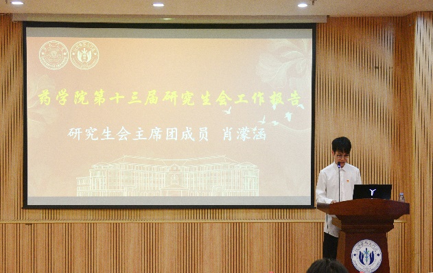 全体代表听取并审议了药学院第十二届学生会主席团成员任延斌、第十三届研究生会主席团成员肖濛涵所作的工作报告。报告全方位总结了在过去一年里学生会、研究生会在服务学生、促进学术交流、丰富校园文化等方面工作,对学院党委的领导、团委的指导表示感谢,并对未来学院学生会、研究生会的传承发展提出期许,继续坚定跟党走、奋进新时代,为党和国家事业发展作出新的更大的贡献。