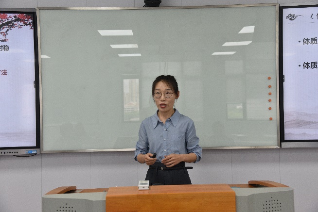 “大家了解自己的体质吗?我们可以通过本节课的学习找到答案。”参赛教师田文静以此为引,从四个方面详细介绍了体质养生的概念、分类、特点及相关调养方法。参赛教师谢静静则从生物安全隐患导入,结合多个生动丰富的教学案例,深入浅出地讲解了多肽蛋白类药物的几种稳定化方法。