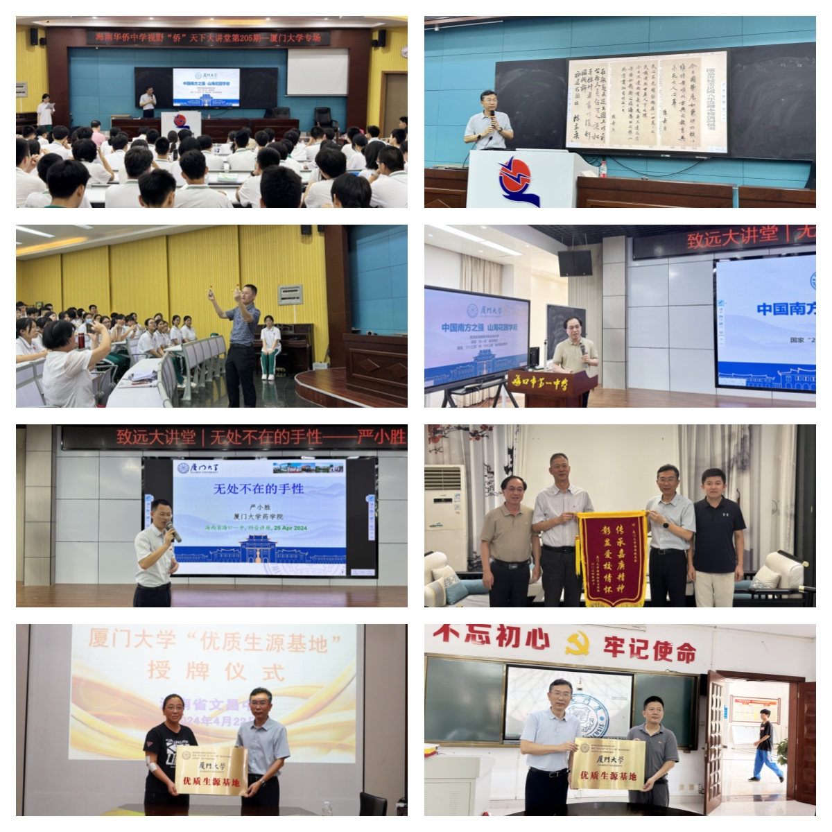 药学院从去年开始赴海南招生宣传,先后多次以招生宣讲、科普讲座、招生咨询等形式开展招生工作,为海南学子提供了更多了解厦大的机会。同时厦门大学海南校友会秉承“传承嘉庚精神、彰显爱校情怀”的精神积极发挥校友的力量,通过校友会会长阎三海和秘书长何瑞文等多位校友的积极推动,进一步促进了厦门大学与海南省各优质中学建立长期合作关系,共同探讨教育创新和人才培养模式,为海南教育的发展贡献力量。